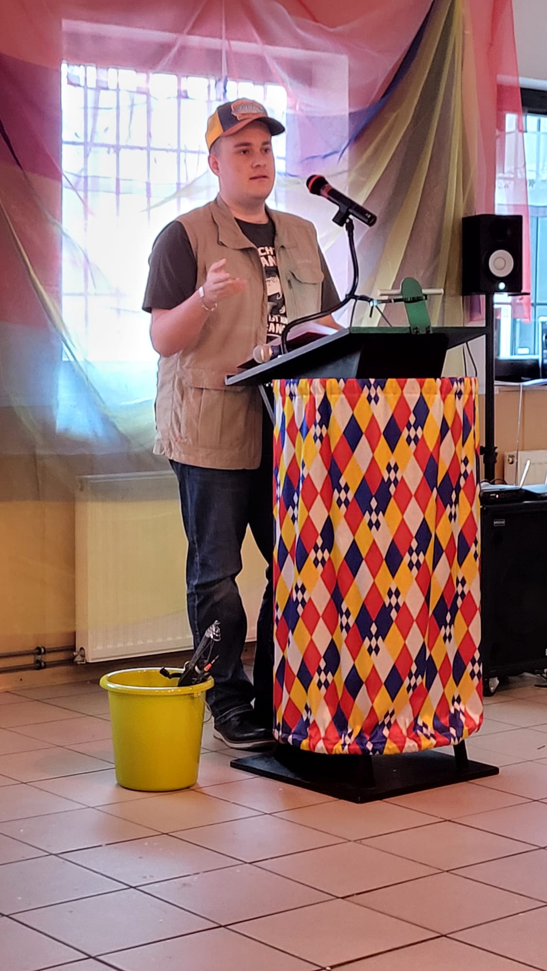 Zum ersten Mal bestieg Florian Lies vom Carneval-Verein Schierstein die Bütt der Schiersteiner Arbeiterwohlfahrt. Super, was der Jung-Angler von seinen Kämpfen mit der Fischereibehörde, einem bösartigen Schwan und etlichen sperrigen Müllteilen im Schiersteiner Hafen zu berichten hatte. Und dennoch: Seiner Angel will er weiterhin treu bleiben und auch der AWO. Beim nächsten Kreppelkaffee will er wieder dabei sein. Super!