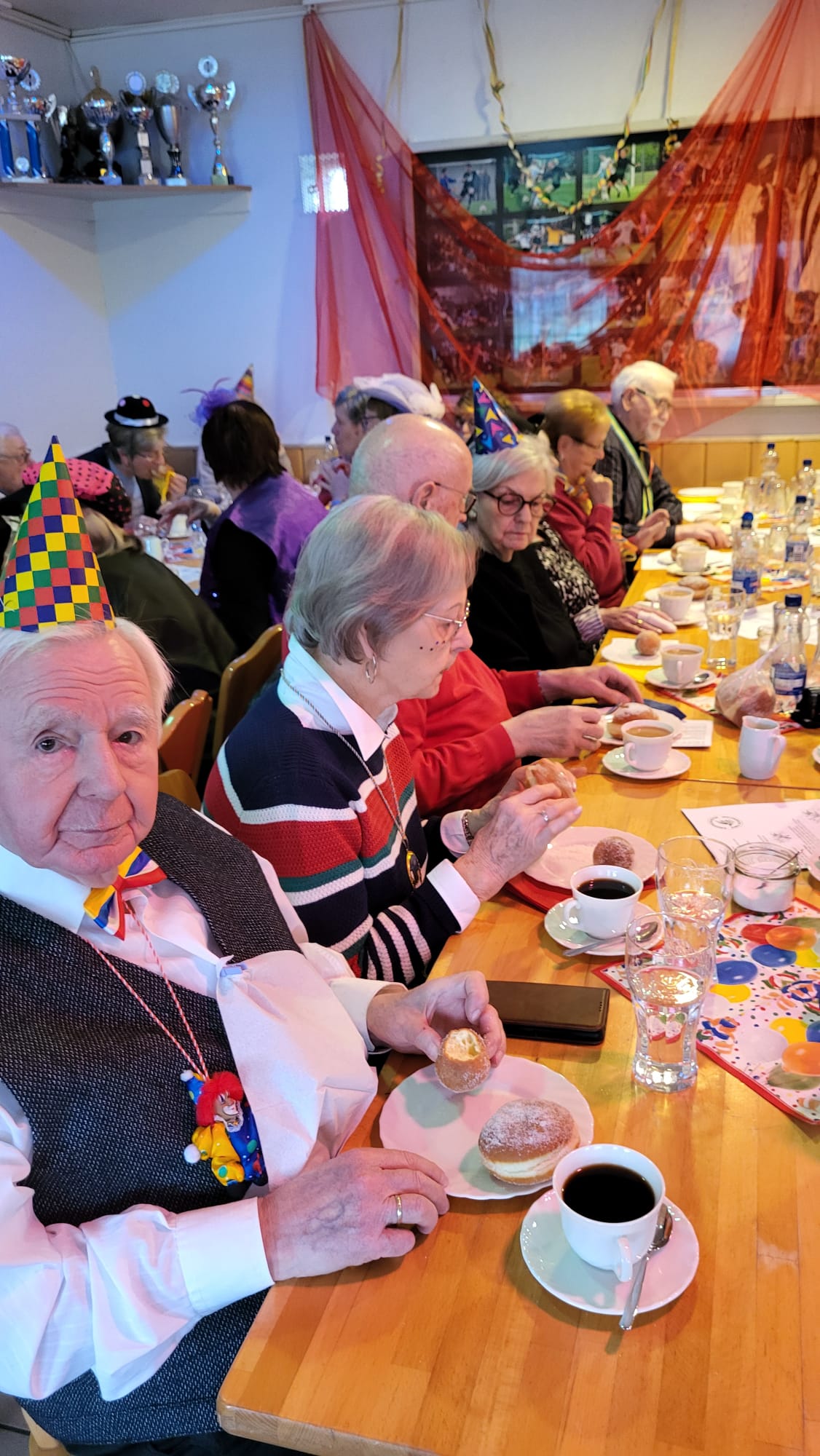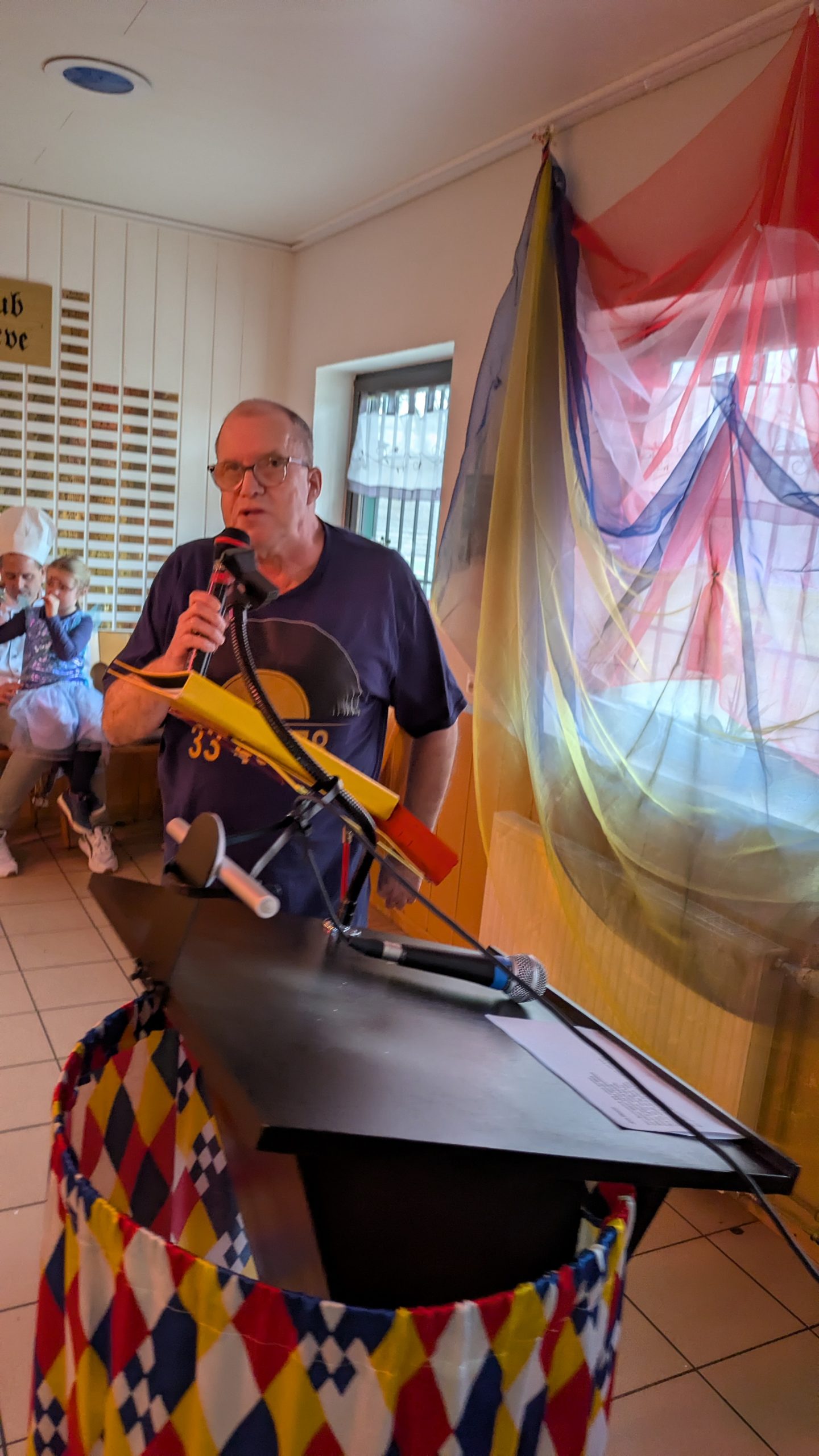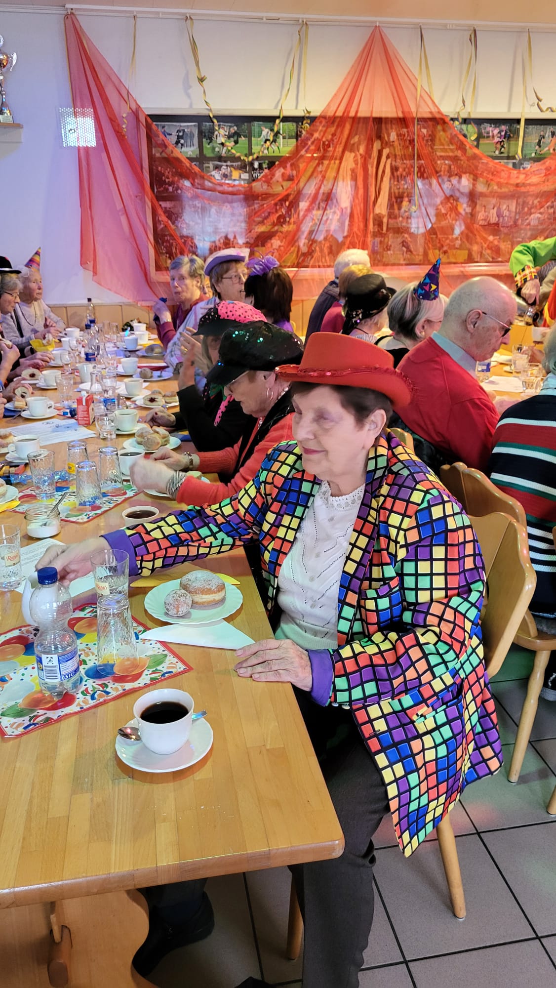 Joe Mauer wusste in seinem Vortrag alle Fragen mit einem Lied zu beantworten. Bringen wir an dieser Stelle besser nicht zu Papier, welche Frage an Gisela Groth mit dem Lied „Alle Jahre wieder!“ beantwortet wurde. Seit Jahrzehnten erfreut Joe, der seine närrische Heimat bei den „Sonnenberger Käuzchen“ und beim CCW hat, die Besucher des Kreppelkaffees, jetzt hat er angekündigt, dass er in Rente geht und er im nächsten Jahr nicht mehr in die Bütt steigen wird. Dass sich bei dieser Ankündigung ein Hauch Traurigkeit in der fröhlichen Runde breitmachte, erklärt sich von selbst.