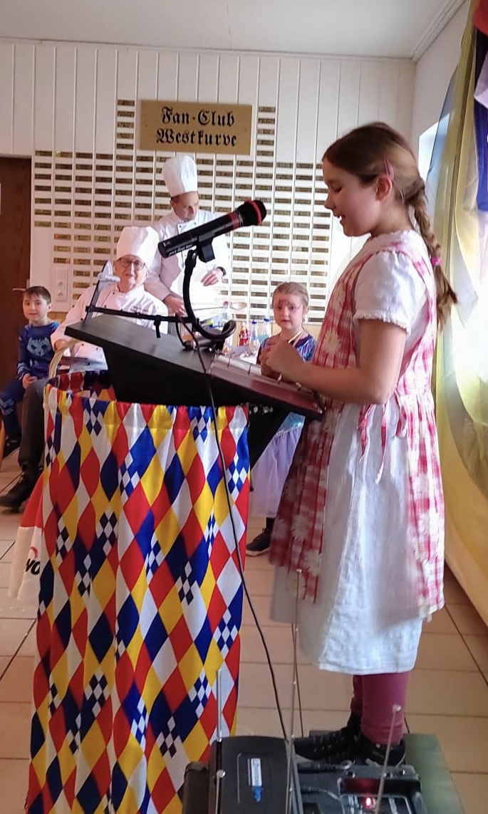 Natürlich durfte der Gesang auch nicht zu kurz kommen. Mangels Masse verzichtete der Ortsverein auch in diesem Jahr auf einen Auftritt der Mainzer Hofsänger. So mussten sämtliche Groths ans Mikro, wobei sich Clara, mit fünf Jahren die jüngste im Grothschen Sängerbund, als erstaunlich textsicher erwies und gemeinsam mit ihrem Papa Lars das schöne Lied „Im Schatten des Doms“ zu Gehör brachte.