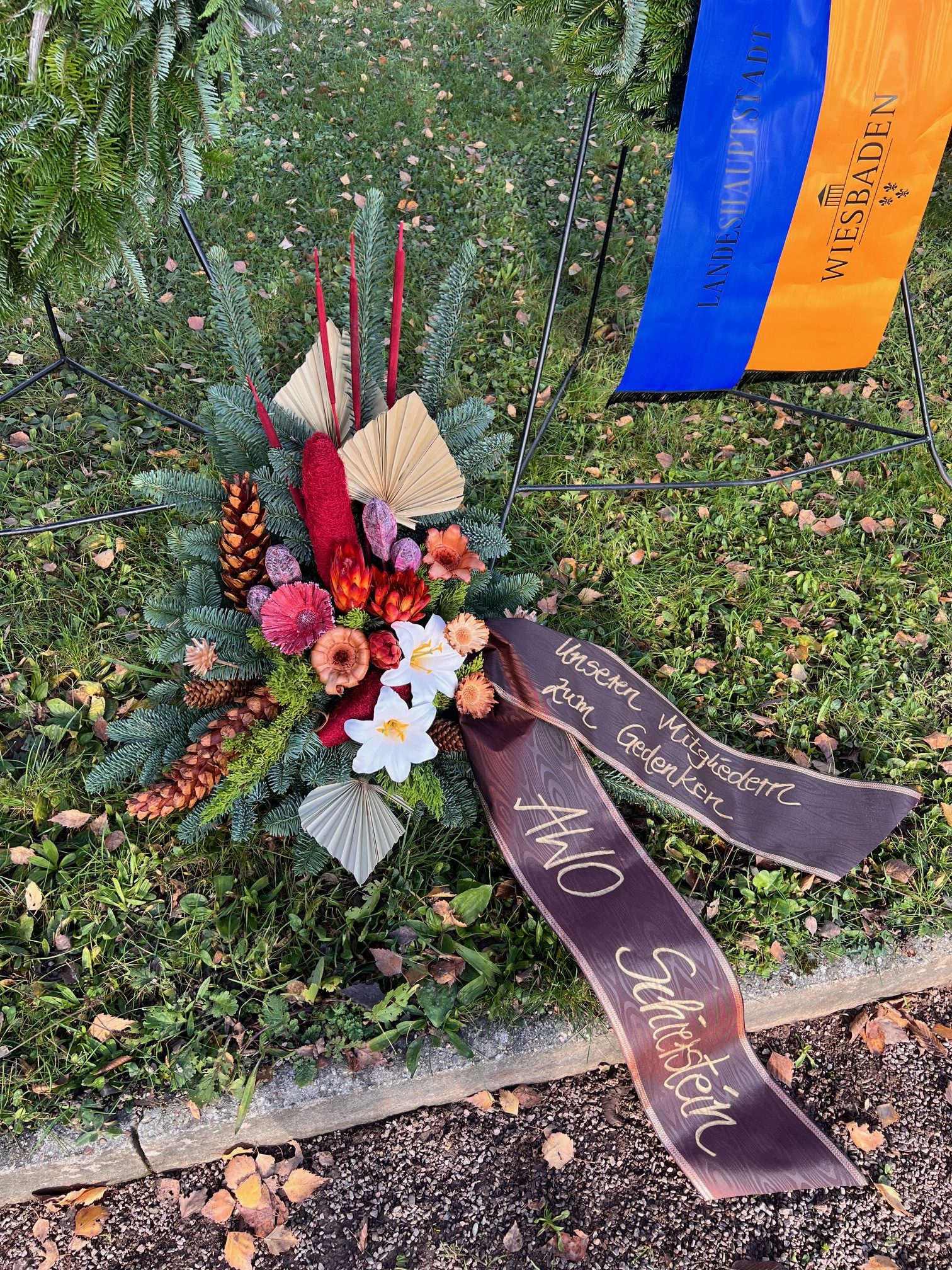 Der AWO Ortsverein Schierstein hat am vergangenen Wochenende seiner verstorbenen Mitglieder gedacht und am Ehrenmal auf dem Schiersteiner Friedhof ein Blumengebinde niedergelegt.