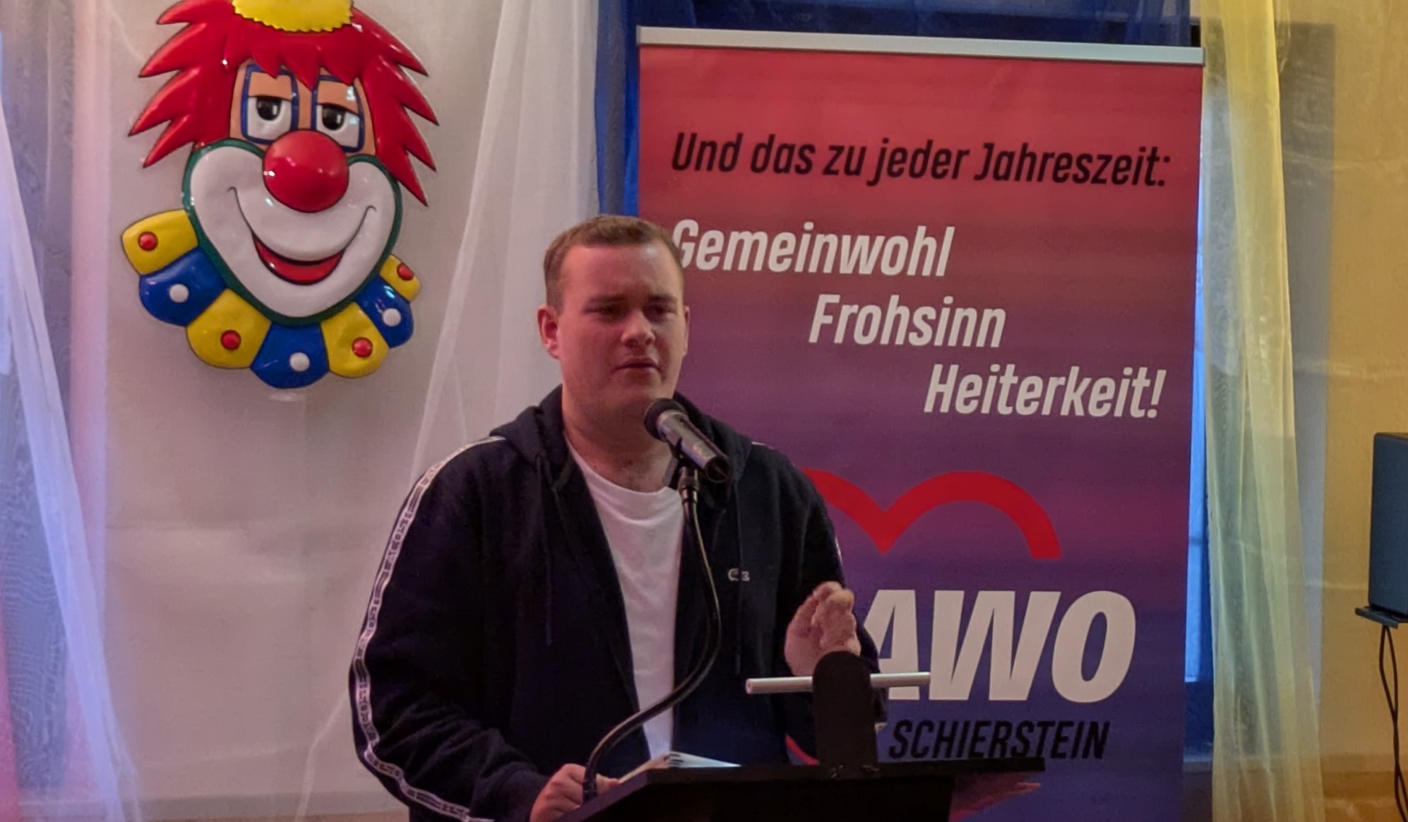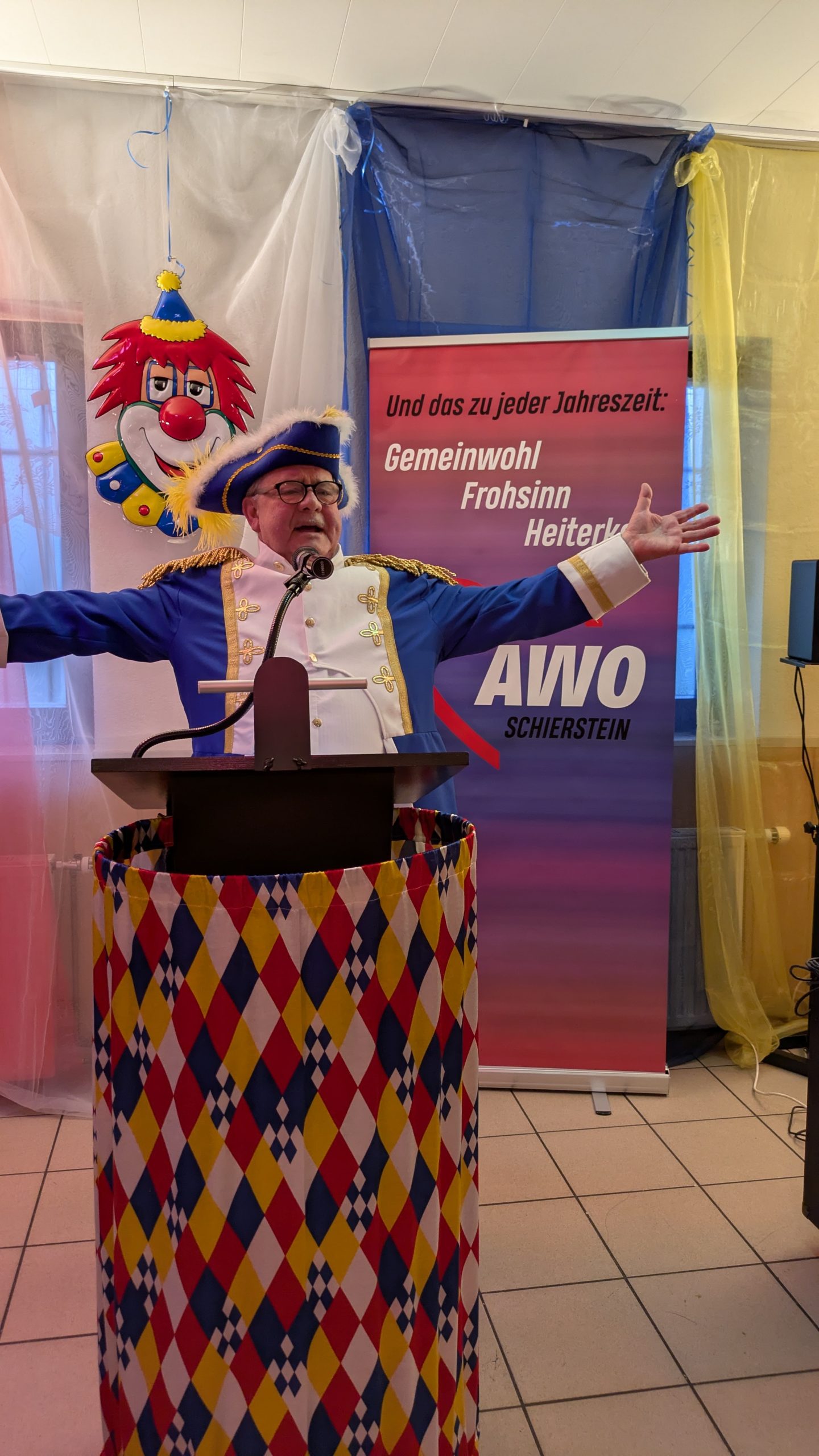 Ein Höhepunkt war auch in diesem Jahr wieder der Auftritt von Stefan Fink, der seit Jahrzehnten fester Bestandteil des AWO-Kreppelkaffees ist und dem es bei seinen Vorträgen immer wieder gelingt, das Publikum zum Mitreimen zu animieren – so auch heute als gestandener Stadtmarschall.