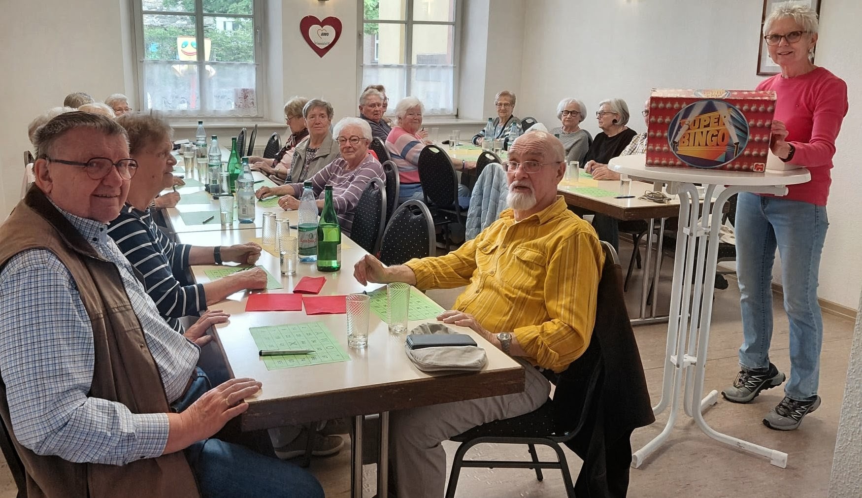 Beim heutigen Klubtreffen rollte wieder die Bingo-Kugel. Auch wenn es nicht um Millionen ging, war die Spannung dennoch groß. Aufmerksam lauschten alle, sobald die nächste Zahl von Gisela verkündet wurde. Für einen Einsatz von nur einem Euro konnte man schließlich immerhin „ein Paareurofuffzisch“ mit nach Hause nehmen. Gute Laune, Kaffeestückchen und viel Spaß standen dabei wie immer im Mittelpunkt.
